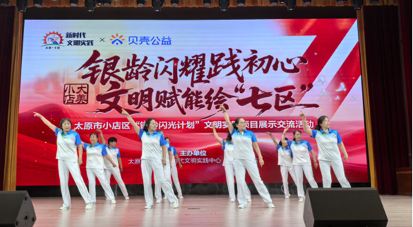 文明山西网讯 6月22日下午,太原市小店区新时代文明实践中心汾东剧场内暖意融融、银发闪耀。以 “银龄闪耀践初心 文明赋能绘‘七区’”为主题的“银龄闪光计划”文明实践项目展示交流活动在此隆重举行。来自全市各社区的老年朋友们齐聚一堂,通过健康操展示、文艺演出等形式,生动展现新时代老年人“老有所为、老有所乐”的精神风貌,为小店区深入实施“七区”战略注入温暖而强劲的银龄力量。本次活动由小店区新时代文明实践中心和贝壳公益联合举办。