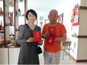 文明山西网讯 在中国共产党成立104周年之际,为表达对离退休老党员的崇高敬意,传承红色信仰,6月26日,太原市小店区滨东社区党委采取“上门颁发+上门慰问”方式,为2名党龄满50年的退休老党员颁发“光荣在党50年”纪念章,送去组织的关怀与温暖,进一步增强党员的荣誉感、归属感、使命感。