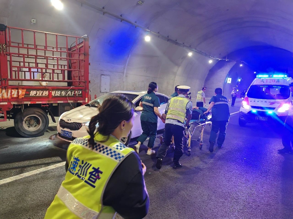 险情发生后,高速交警一支队五大队与太原西北二环高速公司等相关单位立即启动应急联动机制,第一时间实施交通管制、疏散滞留车辆;古交市消防救援大队快速破拆救援,成功解救被困伤员;120急救人员现场开展专业医疗救治并安全转运伤员;高速交警与综合执法部门协同完成事故勘查和路产损失勘验;清障救援单位高效完成事故车辆拖移作业。各环节衔接紧密,处置规范有序,仅用30分钟即成功处置险情,恢复隧道正常通行。