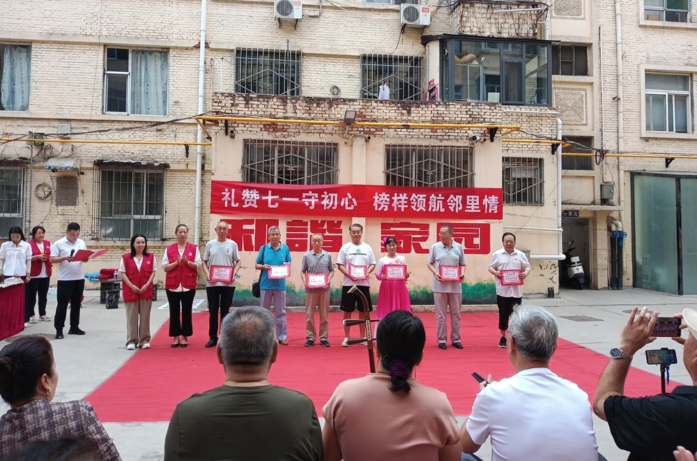 社区书记、主任董淑芳在致辞中表示:“这些先进榜样是社区治理的‘毛细血管’,他们用行动诠释着‘为人民服务’的宗旨。”荣获“优秀党员”称号的冯守智同志,多年来牵头组织社区“银晖先锋志愿服务队”,带领党员秉承“群众张嘴、党员跑腿”的服务理念,汇聚“银发”力量,把离退休干部作用发挥在服务居民的实践第一线;“优秀小区管家”巧借“和事桌”“议事角”调解婚姻家庭、邻里矛盾纠纷,维修小区上下水管道、暖气分户供暖等居民急难愁盼事务,奏响小区“和谐声乐”;“优秀志愿者”团队中,既有坚持2年参与社区便民有“5”与邻同行便民服务的爱心理发师,也有主动承担小区垃圾分类宣传的青年业主。