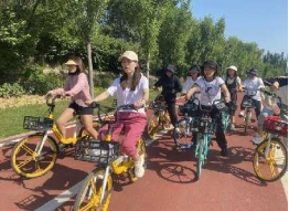 大家骑着共享单车,开始了“红色”骑行之旅。此次骑行从迎泽桥出发骑往漪汾桥,在晨间阳光的沐浴下,大家一路欢笑一路歌。在逆风而行的挑战中,你追我赶不松劲,整齐有序的自行车队形成了一道亮丽的风景线,大家在感受骑行乐趣的同时,也在向社会传递携力保护环境的共同心声。