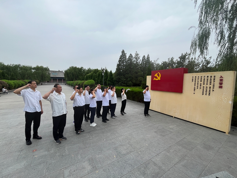 参观结束后,全体党员在纪念馆前重温入党誓词。面对鲜红的党旗,大家高举右拳,铿锵有力地宣读誓词,字字千钧的誓言在广场上空回荡,这不仅是对初心的回望,更是对使命的郑重承诺。那一刻,党员们更加深刻地意识到自己肩负的责任与担当。