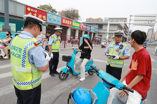 文明山西网讯 6月30日,运城市公安局盐湖分局交警大队按照上级公安机关党委的安排部署,积极组织民辅警在城区24个重点路口、路段积极开展主城区交通秩序整治行动,重点查纠机动车违法停车、三轮车违法载人、非机动车不各行其道、不佩戴安全头盔、逆行、闯红灯、越线停车等交通违法行为,同时对不佩戴安全头盔的驾驶人进行劝导教育,引导群众安全文明出行,营造良好的道路交通环境,提高城市品质。图为当日大队六中队 民警在黄河大厦岗查处二三轮车交通违法行为。