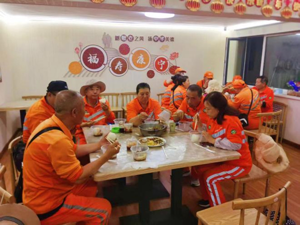 文艺汇演结束后,社区幸福食堂还为市政府小区的老年人以及辛勤工作的环卫工人免费发放饭菜。温馨舒适的就餐环境,让老人们和环卫工人感受到了家一般的温暖。大家围坐在一起,开心地品尝着美食,相互交流着活动的感受。环卫工人李阿姨感动地说:“平时工作忙,吃饭都很随便,今天社区给我们准备了这么丰盛的饭菜,真的太贴心了,感觉特别幸福。”