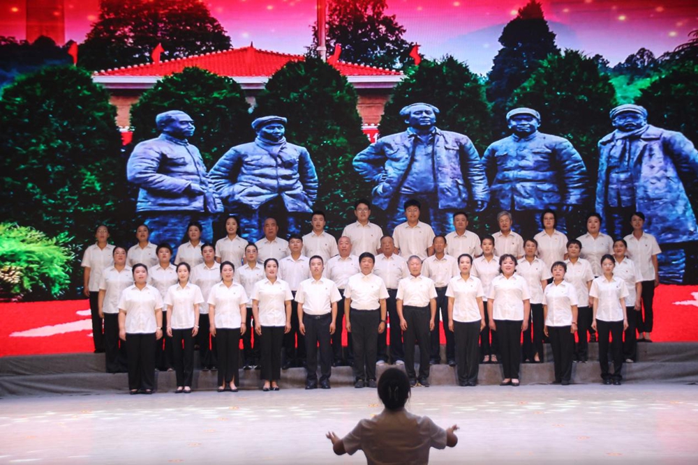 晚会在大合唱《没有共产党就没有新中国》 中拉开帷幕,50人合唱团现场伴奏,激昂旋律瞬间点燃全场。指挥李玲引领节奏,刘桂梅等演唱者以饱含深情的歌声,回溯党的光辉起点,为晚会奠定“红心向党”的主基调。