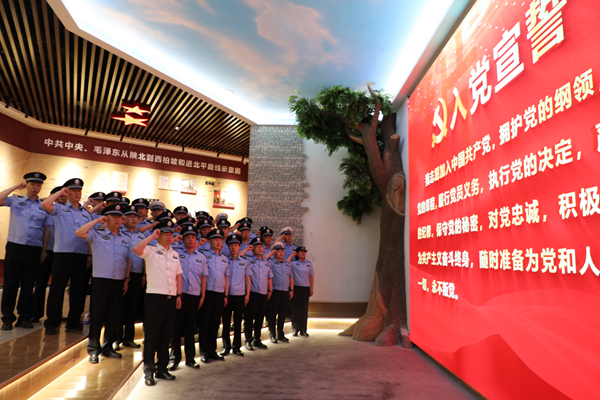 “我志愿加入中国共产党,拥护党的纲领,遵守党的章程......”在王治国同志的领誓下,大家高举右拳,庄严宣誓,一字一句铿锵有力的声音既是党员们对入党初心的深情回望,更是对使命担当的郑重承诺。此次主题党日活动,犹如一场深刻的精神洗礼,让党员民辅警们了解了八分区在抗战时期完成了运送伤员、粮食、弹药、文件等艰巨任务,为抗战胜利作出了不可磨灭的贡献,感受到了革命先烈们顽强不屈、团结奋进、对党忠诚的精神。进一步强化了队伍的政治思想,提升了忠诚意识与使命担当,激发了大家立足公安岗位、服务人民群众的职业荣誉感和责任感,为持续推进古交公安作风建设注入了强劲的精神动力。