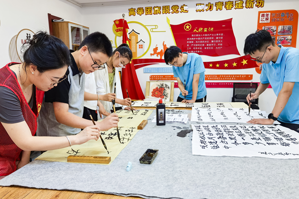 文明山西网讯 近日,在太原市万柏林区千峰街道迎泽北社区活动室内,书法兴趣课堂开课。来自太原理工大学的大学生志愿者担任授课老师,指导社区儿童学习书法。