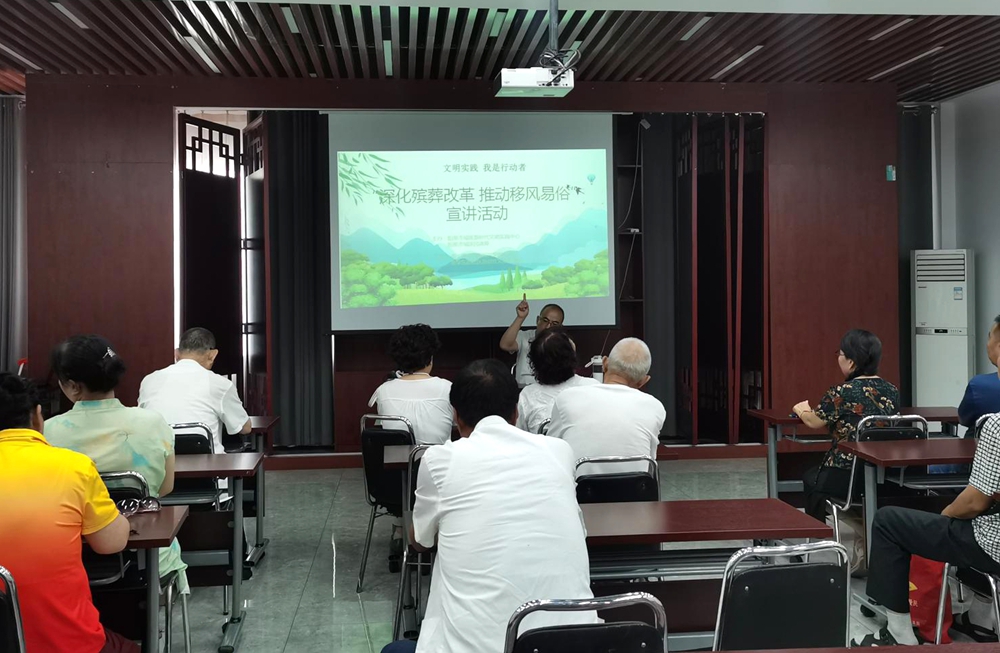 文明山西网讯 近日,阳泉市城区南山路街道新华东街社区聚焦“祭扫陋习改什么、文明方式怎么做”,联合阳泉市城区新时代文明实践中心,在社区四楼宣讲室开展贴合居民生活的殡葬改革宣讲活动,用身边事讲透政策理,让大家明白改革不是“添麻烦”,而是让思念更有温度。