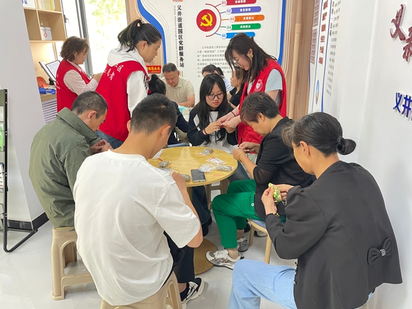 文明山西网讯 5月27日,阳泉市城区义井街道德业居社区携手阳泉58科创园内企业员工、居民代表等,在义井街道园区党群服务站共同开展端午节香囊制作及交流活动,将传统文化与社区情谊深度融合。