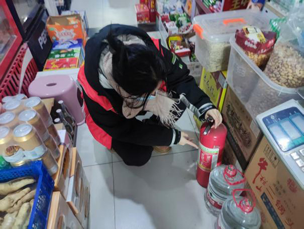 精密化织密安全网,全面清患保安全。社区网格员检查针对辖区内的排房、门店等,通过实地走访、问询、查看,对生产经营单位安全责任是否落实、消防器材是否按规定配备及灭火器是否正常有效等方面进行细致排查。同时,社区网格员发放“消防安全温馨提示”,提醒相关负责人要定期进行自查自检,督促其主动落实各项安全措施,共同维护社区的安全稳定。