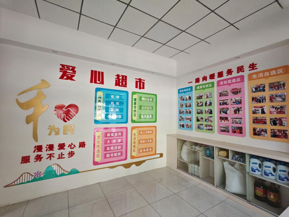花园街社区对爱心超市进行空间与功能重构,打造出脉络清晰、服务精准的四大功能专区: