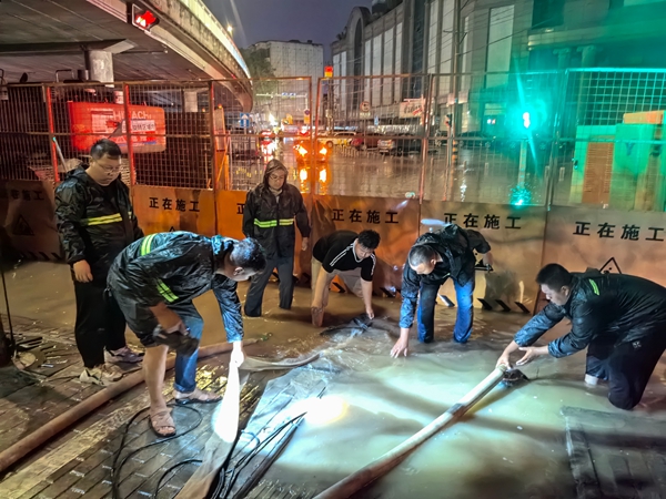 文明山西网讯 5月22日,安徽省阜阳市遭遇暴雨天气,短时间内大量降水致使部分城市道路严重积水,众多车辆被困,交通拥堵不堪,形势十分危急。面对突发险情,山西建投机械化集团所属第三工程公司阜阳市颍泉区循环经济园区路网建设工程PPP项目部迅速响应,展现出卓越的应急处置能力和国企担当。当晚8时36分,项目部接到阜阳市颍泉区重点工程建设管理中心的防汛应急求助电话后,立即启动应急预案,迅速组织项目管理人员8人、工人6人,携带三台抽水泵、三台汽油发电机以及300米消防水袋等防汛应急物资赶赴现场,成为暴雨中的“逆行者”。