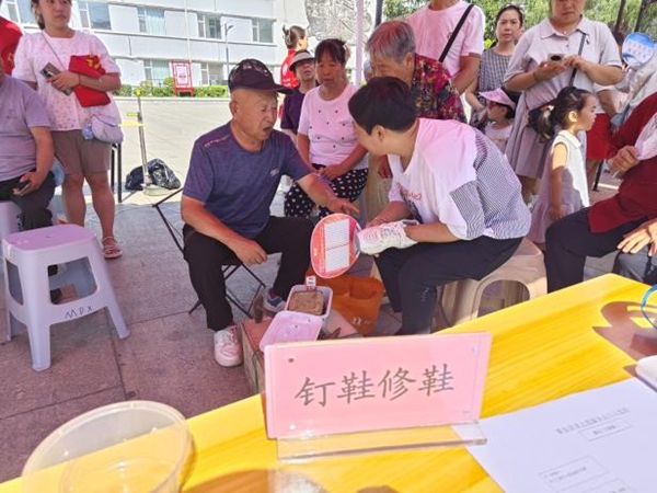 活动现场,修鞋摊位前围满了居民,修鞋师傅熟练地使用工具,对破损的鞋子进行缝补、换底等维修工作,不一会儿,一双双破旧的鞋子就焕然一新;免费修案板区域同样热闹非凡,师傅认真检查案板的损坏情况,仔细打磨、加固,让居民家中的案板重新恢复使用功能。居民们纷纷对师傅们精湛的手艺和热情的服务点赞,感慨这些服务解决了他们日常生活中的小难题。