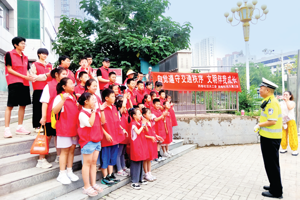 7月11日,太原市万柏林区和平街道西巷社区携手太原市交警支队万柏林一大队,开展了“缤纷暑期欢乐多”社会实践活动之“自觉遵守交通秩序 文明出行伴我成长”交通文明劝导志愿服务活动。