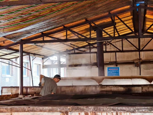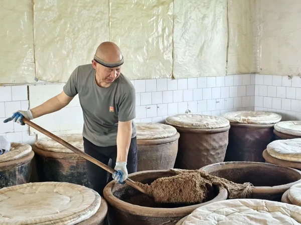 酿造师傅们凭借着多年积累的经验,每日悉心翻搅,调控温度与湿度。他们如同技艺精湛的艺术家,精准把握着每一个细节,确保发酵过程的完美进行,独属于兰花醋的味道也在这一过程中悄然生成。工人翻缸时扬起的醋醅,熏制车间飘散的糊香,皆是工业化时代稀缺的烟火气。