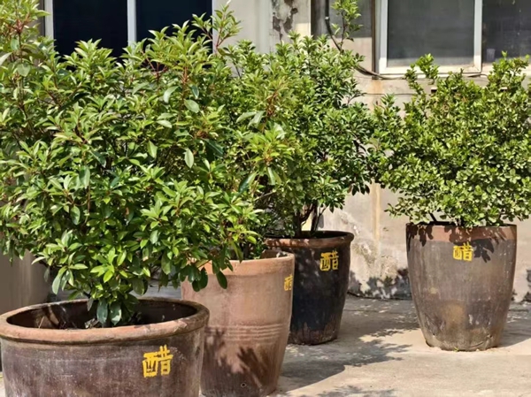 兰花醋的传承,不仅是技艺的延续,更是文化与时代的共振。 醋厂院子里,栽种绿植的花盆都是经年醋缸,让兰花醋也变得更有韵味。
