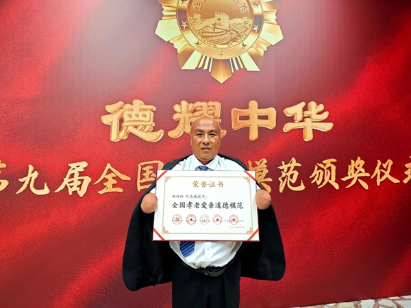姚何林荣获山西省道德模范称号。