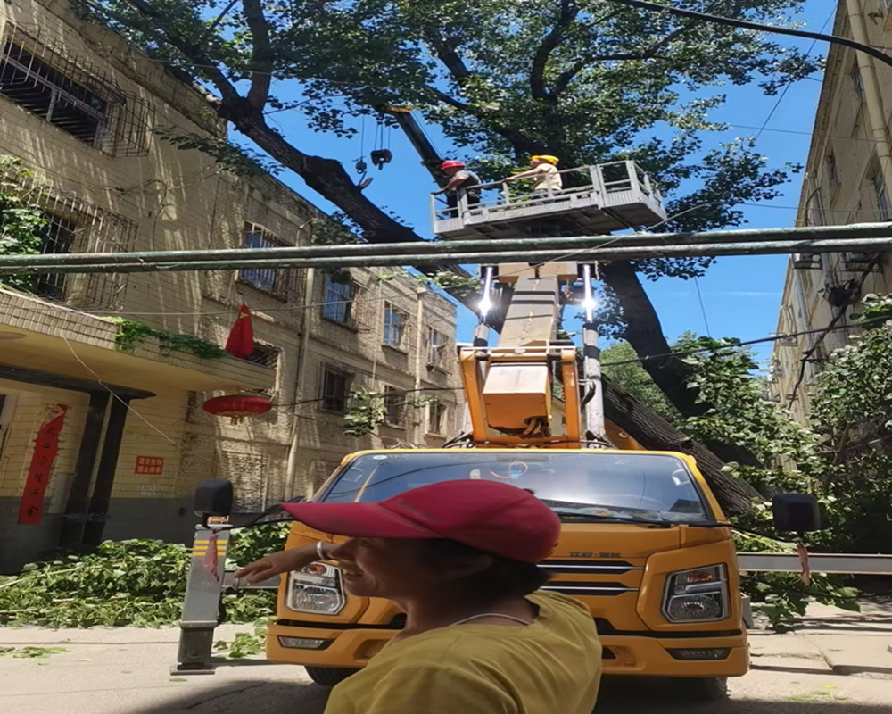 保利团队“靶向作业”除险情。接到消息后,保利部门迅速组建专业处置队,带着检测仪器赶赴现场“会诊”。经过测量倾斜角度、探查树干空洞、分析根系健康度,最终确定5棵树已无挽救可能,必须立即移除。为减少对居民生活的干扰,施工团队做足“细功夫”:选在工作日午后作业避开人流高峰,用警戒线围出安全区并张贴提示。随着吊车缓缓起吊,电锯精准切割,倾斜的树干被分段安全运离,蛀空的残枝被彻底清理,连深埋地下的老根也被挖除平整。整个过程忙而不乱,一天就完成了全部清理工作。