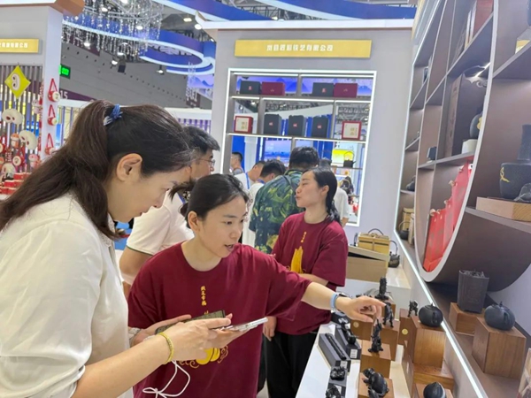 鼓声咚咚,舞步铿锵。开馆首日,山西展馆人气爆棚,众多客商纷至沓来。晋城展区内,10家参展企业携800余件文创精品强势集结、惊艳登场。厚重的铁货、瑰丽的珐华、柔婉的潞绸竞相绽放,将我市千年文脉与匠心技艺娓娓道来。此次参展规模刷新历届纪录,以澎湃之势亮出文化强市的硬核实力,尽显我市的独特魅力。