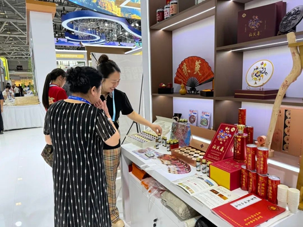 既有“常青树”,也有“燎原火”。山西福南春山茱萸生物科技有限公司首次参展,带着一股“初生牛犊不怕虎”的气势,让可口的山茱萸饼、山茱萸原浆等产品火爆出圈。“早在周朝,山茱萸就被当作不可或缺的美果。秦汉时有了插戴山茱萸的习俗,寓意吉祥。尤其是每年的重阳节更离不开茱萸,我们推出的一系列山茱萸产品,包括周边文创产品,如绣有茱萸纹的衣衫等,都是传承和弘扬中华孝道文化的一种方式。”提及山茱萸文化,销售经理段红梅变成了“话痨”,我们沿袭古人重阳食用山茱萸的传统,选用道地生长、天然野生的山茱萸果,采用水浸提、低温真空浓缩技术制成山茱萸提取物,保留了山茱萸的有效成分,经过科学配伍制成山茱萸植物饮品。截至开馆首日下午4点,山茱萸系列产品已销售破万。