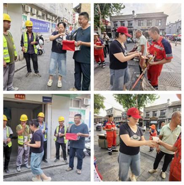 活动当天,社区工作人员熬煮的解暑绿豆水,从挑选饱满绿豆到熬至绵软出沙,再加入适量冰糖,晾至适宜温度后分装,只为让每一杯都能有效驱散暑气。同时,社区联动辖区卫生服务站,筹备了风油精、藿香正气水等防暑物资,为环卫工人们构建起消暑 “防护网”。在南大街上,当环卫工人结束一轮清扫工作后,社区党总支书记带领大家将绿豆水及防暑物资递到他们手中,并详细叮嘱高温天气要注意防暑避暑,合理安排作业与休息时间。