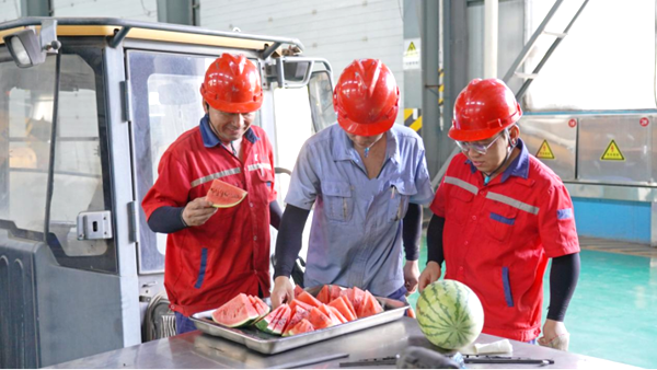 活动当天,工作人员前往生产一线、磅房、门岗、机修车间等区域,将提前准备好的西瓜、绿豆汤、防暑药品等消暑物资一一发放到职工手中,并叮嘱大家提高防暑意识,在全力做好本职工作的同时,务必注意自我保护。收到慰问品的职工们脸上洋溢着喜悦的笑容,大家纷纷表示:“虽然天气炎热,但公司的这份关怀让我们心里格外凉爽,工作也更有干劲了。我们一定会坚守岗位,尽职尽责,以实际行动为公司发展贡献力量。”