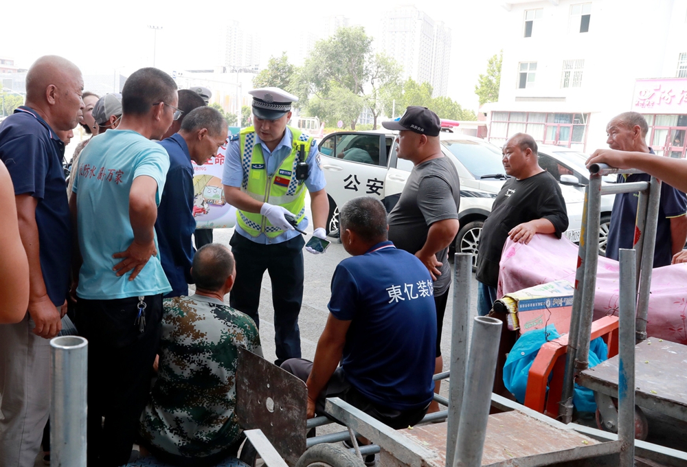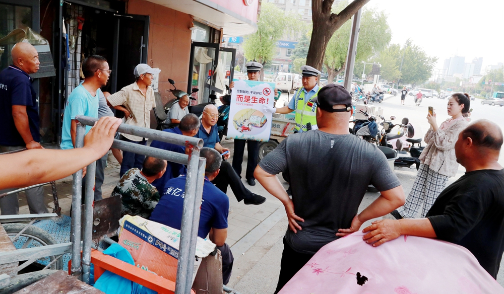 活动当天,大队二中队民警在打零工比较集中切易翻护栏的中银北路桥头商店路口,通过播放警示案例、讲解宣传挂图、发放宣传手提袋等形式,结合实际案例,详细介绍行人翻越栏杆的危害以及正确的出行方式,提醒大家多走几步,安全过街。(葛崇收)