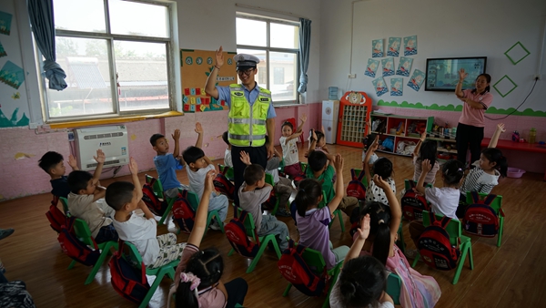 文明山西网讯 5月28日,山西高速交警四支队五大队民辅警走进运城市盐湖区红果果幼儿园,开展“交通安全进校园”主题宣传活动,为孩子们送上“交通安全大礼包”,进一步提升儿童的交通安全和自我安全防范意识。