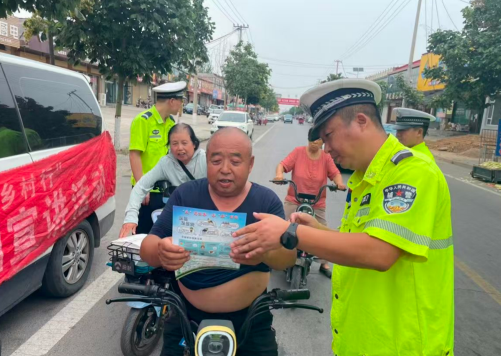 活动中,民辅警结合夏季农村地区交通特点和暑期交通安全,通过悬挂交通安全宣传横幅、发放宣传材料、现场答疑,大喇叭讲解交通安全知识提醒等形式,向村民们细致讲解交通安全知识。特别是针对夏季降水的特点,民辅警重点分析了雨天路面湿滑、能见度降低对行车安全的影响,详细讲解和演示“减速慢行、保持车距、谨慎通过积水路段”等实用技巧,提醒村民遇暴雨天气尽量减少不必要出行,确需外出时务必降低车速、开启车灯。