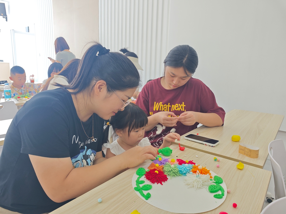 文明山西网讯 8月11日,太原市万柏林区小井峪街道新城社区联合山西师范大学志愿者共同开展“巧手编织童趣心 毛线绘就斑斓梦”亲子手工活动,让家长与小朋友在一缠一绕的互动中携手创作指尖艺术,定格温馨时光,进一步激发孩子们对艺术的浓厚兴趣,让孩子零距离感受毛线画的独特魅力。
