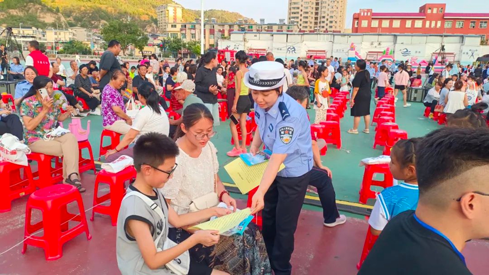 文明山西网讯 近日,临汾公安交警永和交警大队民辅警走进辖区广场晚会现场,利用晚会人流集中、宣传氛围热烈的有利时机,通过播放交通安全警示教育片,发放精心制作的交通安全宣传资料、面对面交流讲解交通安全知识,将专业的交通安全知识融入轻松愉快的晚会氛围中,让群众在欣赏节目的同时,潜移默化地接受了一次生动的交通安全教育,进一步深化交通安全宣传教育,提升广大人民群众的交通安全意识和自我安全防护能力。