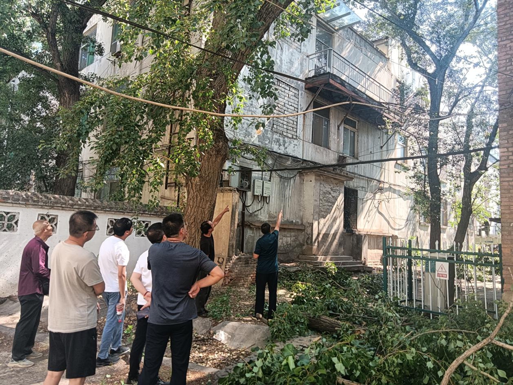 接到居民诉求后,小河社区迅速行动,第一时间联合阳铝留守处相关负责人前往现场查看情况。经实地勘查,工作人员发现这些树木因多年生长,部分树枝已延伸至居民楼阳台、窗户附近,且存在枯枝现象,确实存在较大安全隐患。