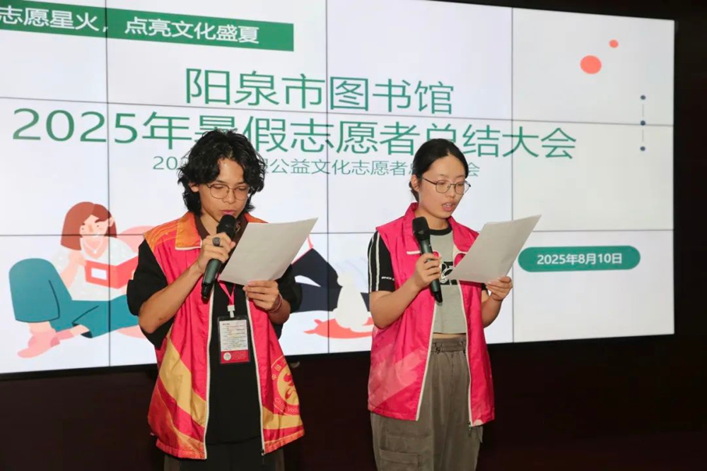 文明山西网讯 8月10日,阳泉市图书馆举办“2025年暑假志愿者总结大会”。市图书馆老师与志愿者们齐聚一堂,共同回顾充实而富有意义的志愿服务历程,分享收获与感动,表彰优秀典型,为这个充满书香与奉献的暑假画上圆满句号。