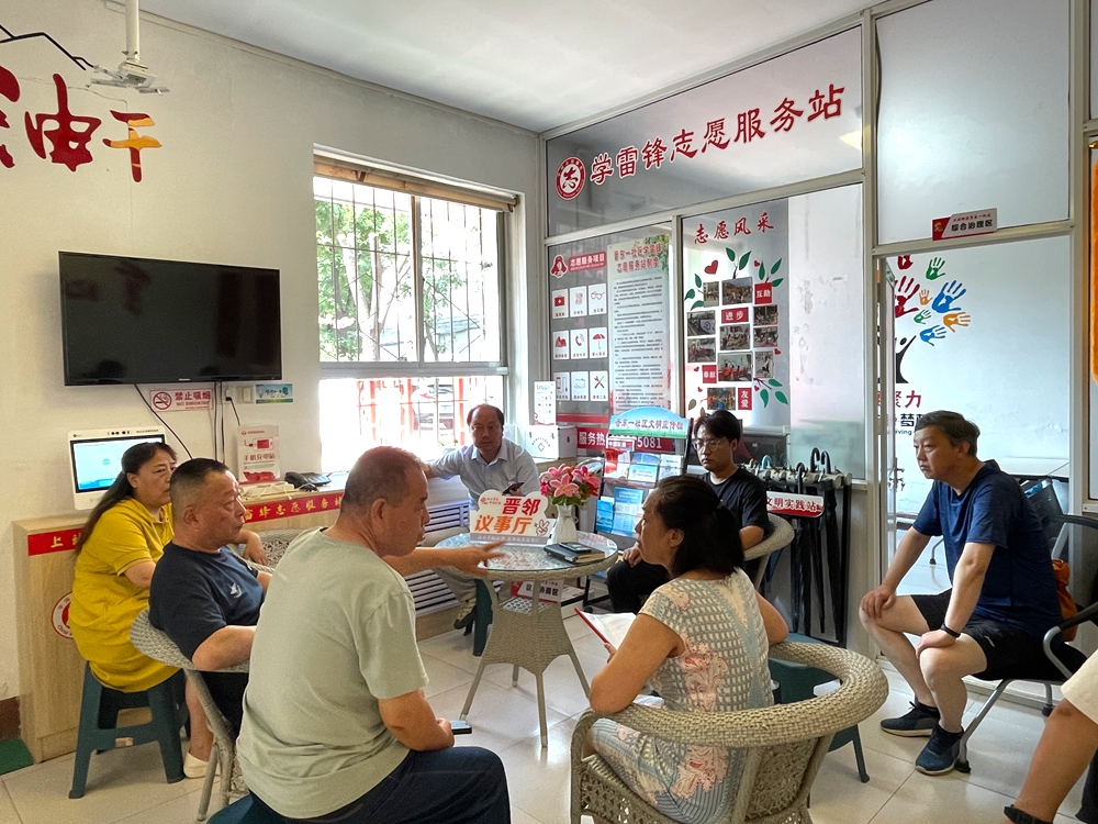 晋东一社区发挥党建引领作用,联动驻地单位、党员骨干与居民代表,构建多元参与的治理新格局,让红色力量浸润社区服务各角落。聚焦群众急难愁盼问题,深入践行新时代“枫桥经验”,创新打造的“晋邻议事厅”成为倾听民声的“连心桥”。在这里,居民们畅所欲言,“小区主干道坑洼不平,老人小孩出行太危险”“健身器材不够用,想锻炼都得排队”“直饮水机太少,拎着水桶找水喝成了日常”…… 一句句朴实的诉求,都被郑重地记在民情台账上。