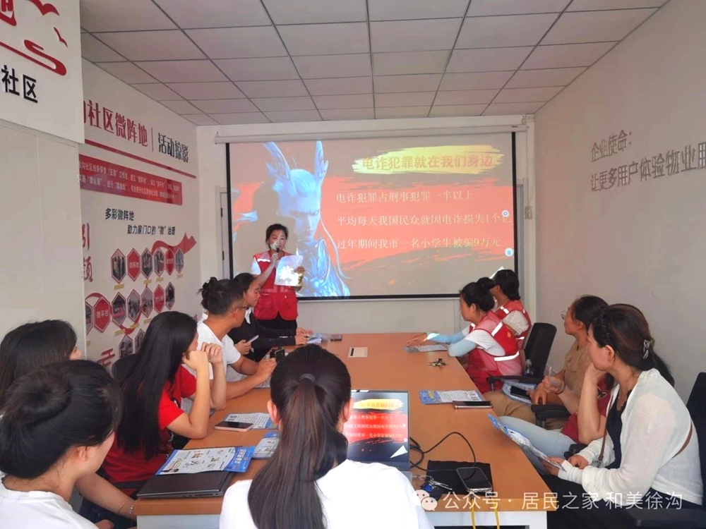 在万科徐园由社区志愿者郝瑞芳进行宣讲,通过当下流行的哪吒反诈骗宣传视频进入主题。就电信诈骗常见的手段,电信诈骗的特点以及如何针对性的预防电信诈骗三个方面展开了重点讲解和宣传。结合身边显而易见的案例,进行了深入浅出的分析,以通俗易懂的语言生动地描述了犯罪分子如何利用未成年人法律知识欠缺实施电信诈骗行为,达到套取钱财的最终目的。呼吁大家在日常生活中要提高警惕,一定要记住不听、不信、不转账、不汇款。