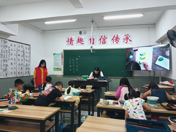 活动当日,辖区内的孩子们满怀期待地来到荣艺书画绘画室,他们年龄虽小,但对绘画的热情却丝毫不减。荣艺书画的老师们通过展示一些充满想象力的绘画作品,鼓励孩子们大胆突破常规,将脑海中的奇思妙想尽情呈现在画纸上。孩子们听得津津有味,眼中闪烁着兴奋与好奇的光芒,迫不及待地想要拿起画笔一展身手。