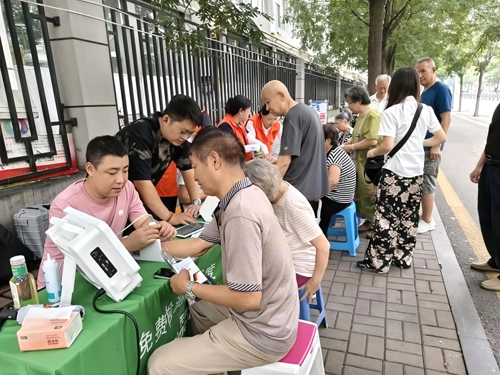 上午9点半,义诊活动准时开始。闻讯赶来的居民有序排队,依次接受血压、血糖、尿酸、骨密度、微量元素等多项检测。医护人员耐心细致地为每一位居民检查,并针对检测结果提供个性化的健康建议。活动现场还设置眼底检查,全方位满足居民的健康需求。“平时去医院检查要排队,今天在家门口就能测血糖、骨密度,真是太方便了!”家住电科院宿舍的霍叔叔笑着说道。许多老年居民表示,这样的义诊活动既省去了跑医院的麻烦,又能及时了解自己的身体状况,希望以后能多举办类似活动。