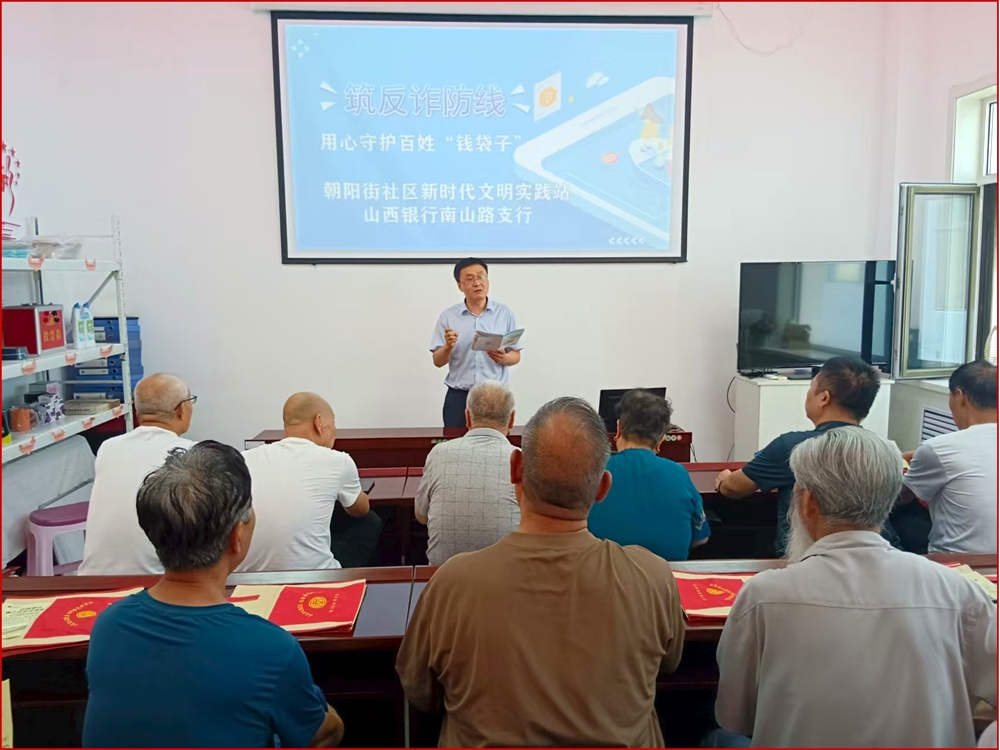 文明山西网讯 近日,阳泉市城区南山路街道朝阳街社区新时代文明实践站联合山西银行南山路支行在社区会议室开展“筑牢反诈防线 用心守护百姓‘钱袋子’”主题宣传活动,吸引了众多居民参与。