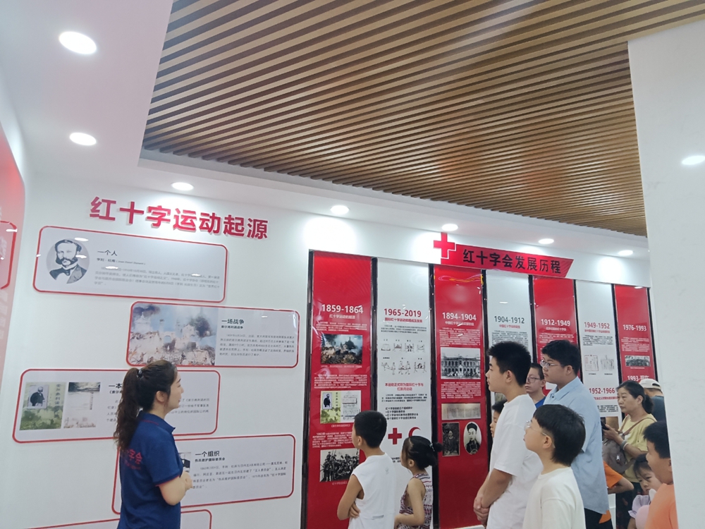 活动伊始,体验馆讲解员以“红十字运动的起源”为切入点,通过墙体的图文展示、历史故事分享的形式,向青少年介绍了红十字运动诞生的背景与发展历程,从亨利·杜南的善举到红十字“保护生命与健康”的使命,让“人道、博爱、奉献”的精神内涵直观呈现在青少年们眼前,帮助他们在了解历史的过程中,初步建立对生命尊重与守护的认知。