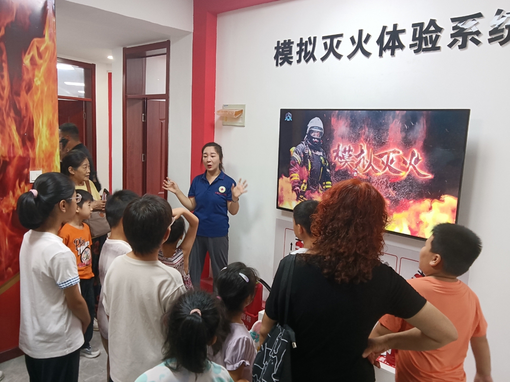 活动最后,青少年们沉浸式体验了模拟灭火体验系统,面对模拟火情,讲解员先问:“大家看,这个火苗是油锅里冒出来的,该用哪种灭火器呀?”“干粉灭火器!”有青少年立刻回忆起之前学的知识,随后在讲解员指导下,大家轮流上前,一边念着“提、拔、握、压”的口诀,一边操作模拟设备灭火,成功扑灭“火情”后,大家非常开心。托管班青少年李天玉兴奋地说道:“今天太有意思了!不仅能抢答问题,还能亲手操作,既学会了使用灭火器又学会了心肺复苏,今后我会更注意身边的安全隐患,用学到的技能守护自己和身边人的安全!”