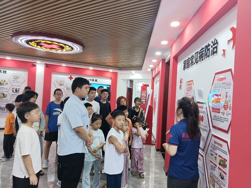 文明山西网讯 8月20日,阳泉市城区下站街道东营盘社区新时代文明实践站组织托管班20余名青少年走进阳泉市红十字会生命健康安全体验馆,开展了一场“沉浸式+互动式”的生命健康安全教育研学活动,进一步深入贯彻落实“人道、博爱、奉献”的红十字精神,有效增强托管班青少年的生命健康安全意识,提升其应急避险与自救互救能力。