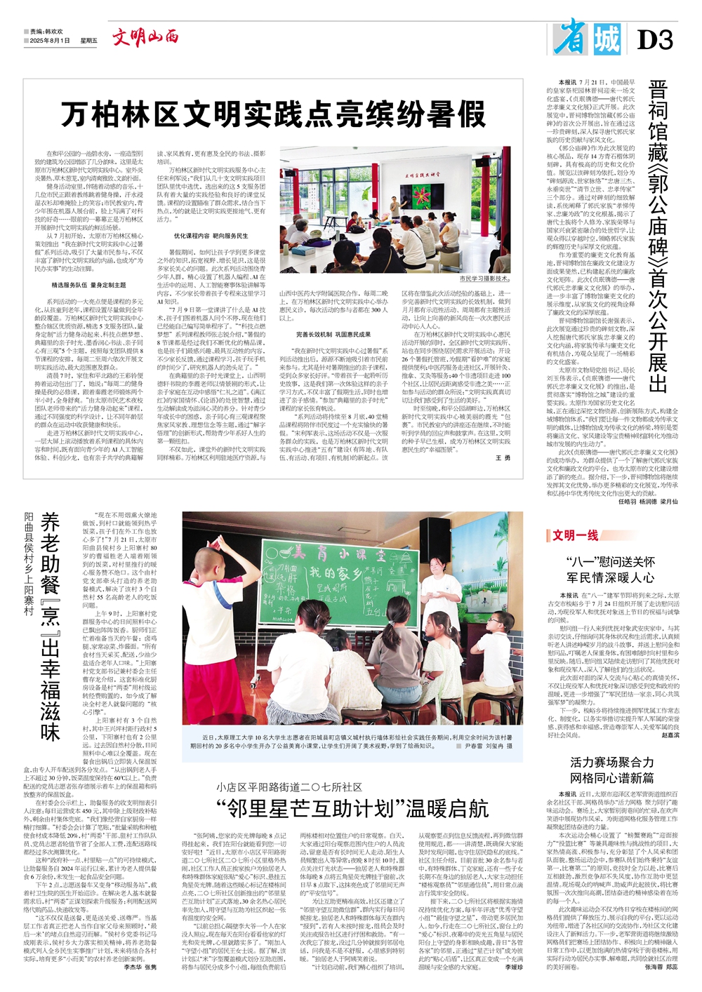 《文明山西》周刊由山西省文明办指导、科学导报社主办,是全省唯一的精神文明类报纸,对开八版,每周五出版,重点宣传山西省群众性精神文明“五大创建”活动、新时代文明实践中心建设、道德典型选树、学雷锋志愿服务等精神文明建设工作,兼顾报道全国各地精神文明创建活动先进经验和创新举措。