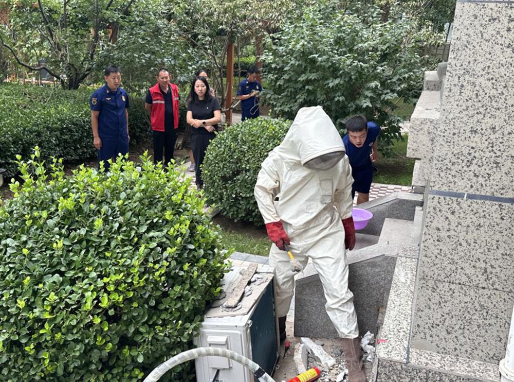 文明山西网讯 8月21日,太原市万柏林区小井峪街道西中环东社区网格员梁正君在进行日常巡查工作时,于恒大城二期7号楼一层发现一处土蜂窝。现正值暑期,小区院内小朋友们活动居多,土蜂窝的存在对居民安全构成严重威胁。网格员意识到问题的紧迫性,立即采取行动,为保障居民安全,迅速联系了驻地单位小井峪消防站负责人,请求专业支援。