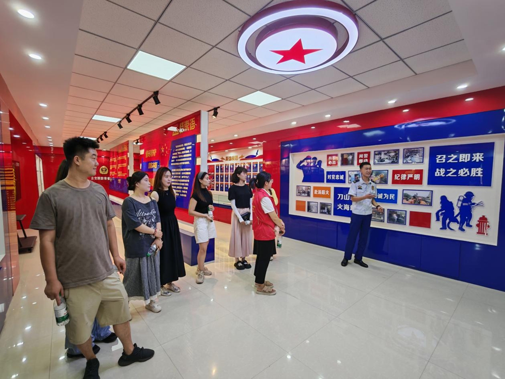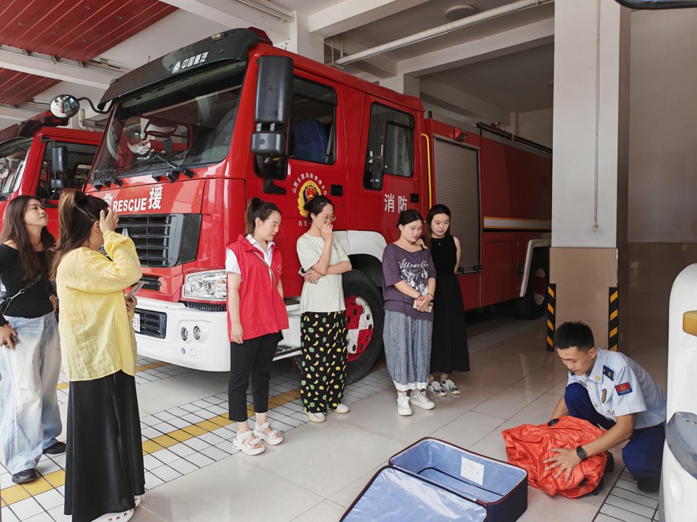 参与者们走进消防队,在消防员的带领下参观了消防车库、装备器材室及消防员生活区、荣誉区,近距离接触消防装备,观摩消防员技能展示,倾听消防员们讲解应急避险知识,分享救援故事,了解他们日常训练与救援的点点滴滴,硬朗的职业形象与专业素养,让参与者对“蓝朋友”产生强烈好感,为后续交流奠定良好基础。