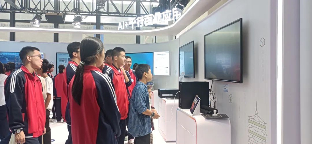 移步至B展区,中国联通展台的AI体验区热闹非凡。学生们纷纷戴上互动设备,沉浸式体验AI技术在教育、娱乐等领域的应用。“太神奇了!感觉自己穿越到了未来课堂,知识仿佛触手可及,这真的让我对5G和AI的融合有了更直观的感受。”参观同学兴奋地说。