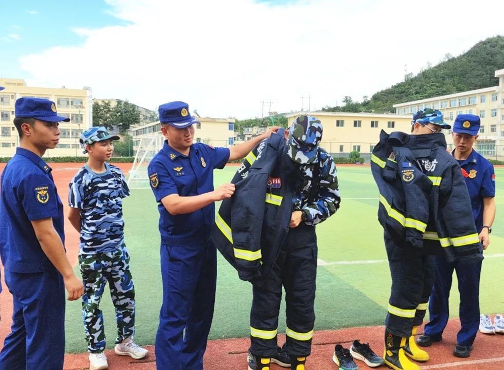 讲解器材使用,树立科学防范意识 消防员以生动形象的语言,为同学们介绍各类救援器材的名称、功能及使用方法——从可剪断钢筋的液压破拆工具组,到重达三十多斤的灭火防护服,逐一细致讲解。现场还邀请学生试穿防护服、佩戴空气呼吸器,沉浸式体验消防员的工作状态。“穿上这身装备,才真正体会到消防员的不易,这么闷热沉重,他们还要冲进火场救人……”一名学生在体验后由衷感叹。