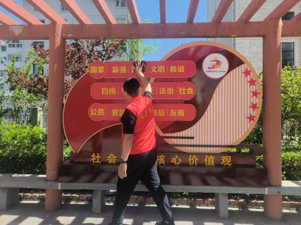 室外公益广告由于长期暴露在外,积累了不少灰尘、污渍,还有一些小广告随意张贴,影响了整体美观和信息展示效果。活动中,志愿者们身着红马甲,携带抹布、清洁剂等工具认真清理公益广告版面,大家分工明确、配合默契:有的用湿抹布仔细擦拭广告版面上的灰尘与污渍,有的用小铲子清除顽固的小广告,有的则对版面周边的杂物进行清理。