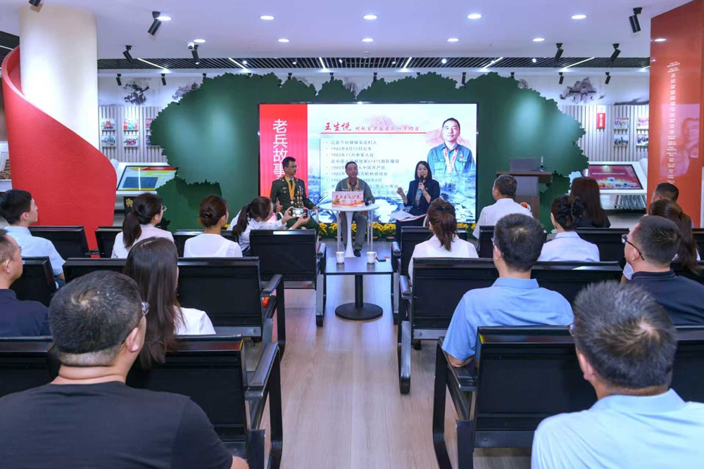 老兵事迹分享环节是本次活动的核心。在互动访谈中,守护南疆、参加对越自卫反击战的卫国勇士王生悦老战士、有着17年军龄、在和平年代默默奉献的退伍军人孔令飞同志分别向大家讲述了他们的军旅故事。通过聆听他们的英勇事迹,让在场的每一个人都深受感动并充满敬意。访谈结束后,多名税务青年党员干部主动分享聆听感悟,纷纷表示将以老兵为榜样,把爱国情怀转化为岗位担当,像他们守护家国那样,守护好自己的职责。青年党员代表还向两位老兵赠送了鲜花,致敬英雄、致敬最可爱的人。随后,两位老兵也向现场的青年职工代表发放抗战书籍,更是把现场人员心中涌动的敬意和感动无限蔓延。