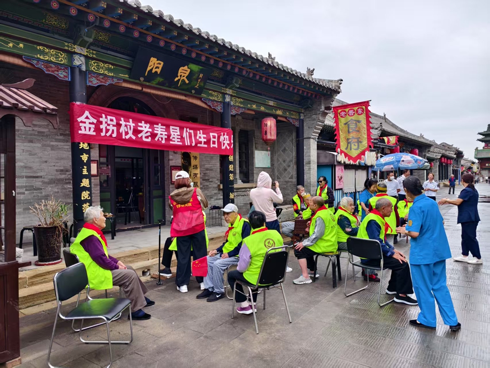 文明山西网讯 9月4日,秋雨微凉,山西古法觉医医学院与清徐金拐杖养老服务有限公司两家单位携手组织了“老宝贝出行活动”,陪同清徐县金拐杖养心(老)院的老人们游览了位于太原市晋源区的太原古县城。活动当天院内有两位老人过生日,大家还一起为老寿星庆生,吃起了长寿面。情到浓处时,大家还不禁地唱起了大家耳熟能详的老歌。