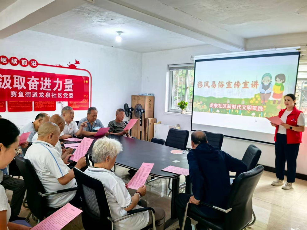 文明山西网讯 9月4日,阳泉市矿区赛鱼街道龙泉社区新时代文明实践站开展移风易俗宣传宣讲活动,旨在积极响应中元节殡葬移风易俗相关工作要求,进一步营造文明和谐的社区氛围。